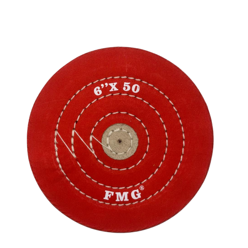 Red muslin buffs are commonly used for cutting and polishing harder metals like platinum. Used for initial cutting or scratch removal on metals.